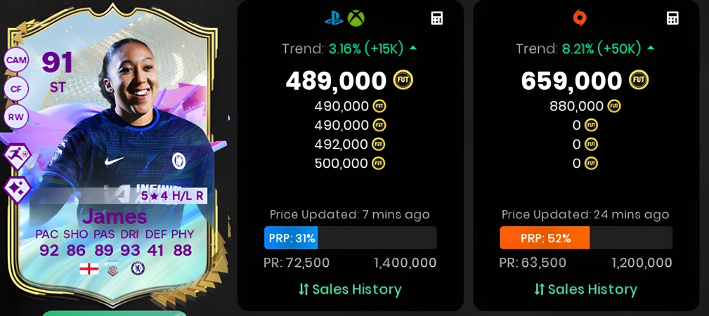 Lastly, you can acquire FC24 coins by purchasing them directly from the transfer market. This is the most straightforward method, but with Lauren James's FUTURE STARS card priced at around 0.49 million UT Coins, it's also the most expensive option. This requires a significant amount of in-game currency and may not be feasible for all players.